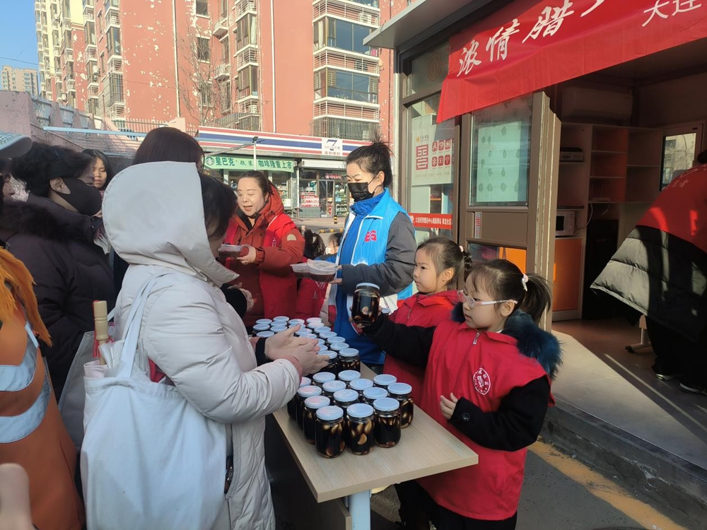 伴随着粥香,志愿者与辖区红星幼儿园的孩子们组成了“暖心小分队”,在驿站外为户外劳动者送上这份冬日限定的温暖。孩子们捧着温热的粥碗,用稚嫩的声音说着“叔叔阿姨辛苦了”,一张张笑脸与户外劳动者眼中的笑意交织,瞬间驱散了冬日的寒凉。接过热粥与腊八蒜,保安叔叔、外卖小哥、环卫工人纷纷表示,这碗粥暖到了胃里,更暖到了心里。