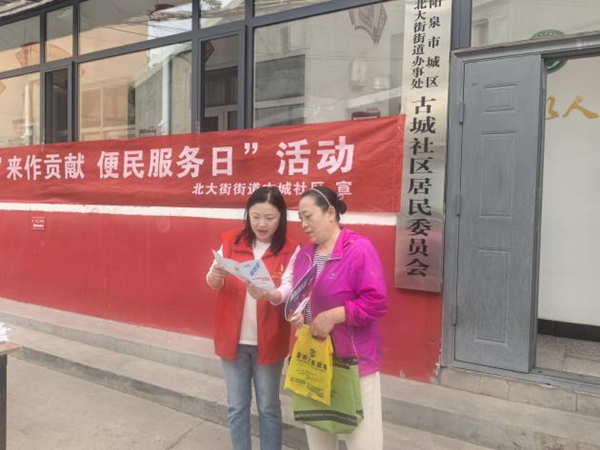 文明山西网讯 近日,阳泉市城区北大街街道古城社区依托“5”来做贡献便民服务日开展社会救助类主题宣传活动,通过“零距离”服务将救助政策送到居民身边,进一步提升社会救助政策知晓率,让惠民政策惠及更多困难群众。