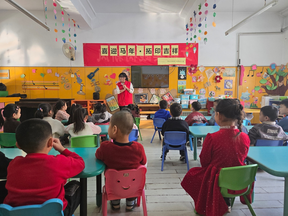 活动中,社工通过趣味导入讲解马年“活力、吉祥、奋进”的寓意,以及小马、福字、灯笼等吉祥图案的文化内涵,详细示范拓印工具使用与“铺纸固定 — 蘸取颜料 — 均匀拓印 — 晾干成型”的完整操作流程,幼儿园老师全程协助引导。孩子们自主挑选喜爱的模板,搭配多彩颜料大胆创作,在动手实践中锻炼了手部协调能力、专注力与创造力,直观感受传统拓印的艺术美感,深深萌发对中华优秀传统文化的热爱。分享展示环节,孩子们积极上台展示作品、分享创作想法,在互动交流中收获了满满的成就感与友谊。