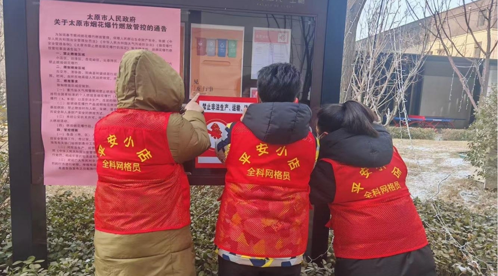 文明山西网讯 近日,太原市小店区黄陵街道东峰社区网格员开展烟花爆竹禁燃禁放宣传活动。