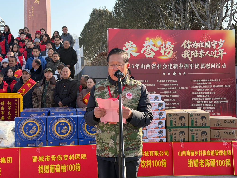 文明山西网讯 2月3日,“你为祖国守岁 我陪亲人过年”2026年山西省社会化新春拥军优属慰问活动在太原解放纪念馆启动。本次活动由山西省爱国拥军促进会、太原市退役军人事务局联合主办,十六家爱心企业及多家协办单位共同参与。