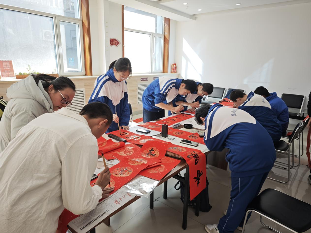 春联书写区内,学生们铺纸研墨、挥毫泼墨,将对新年的期盼与对长辈的敬意凝于笔端。随后,大家化身志愿者,将亲手书写的春联与福字送到辖区高龄、独居老人家中,用暖心行动传承孝老爱亲美德,相关善举均计入社区道德储值台账,激励青少年践行文明。