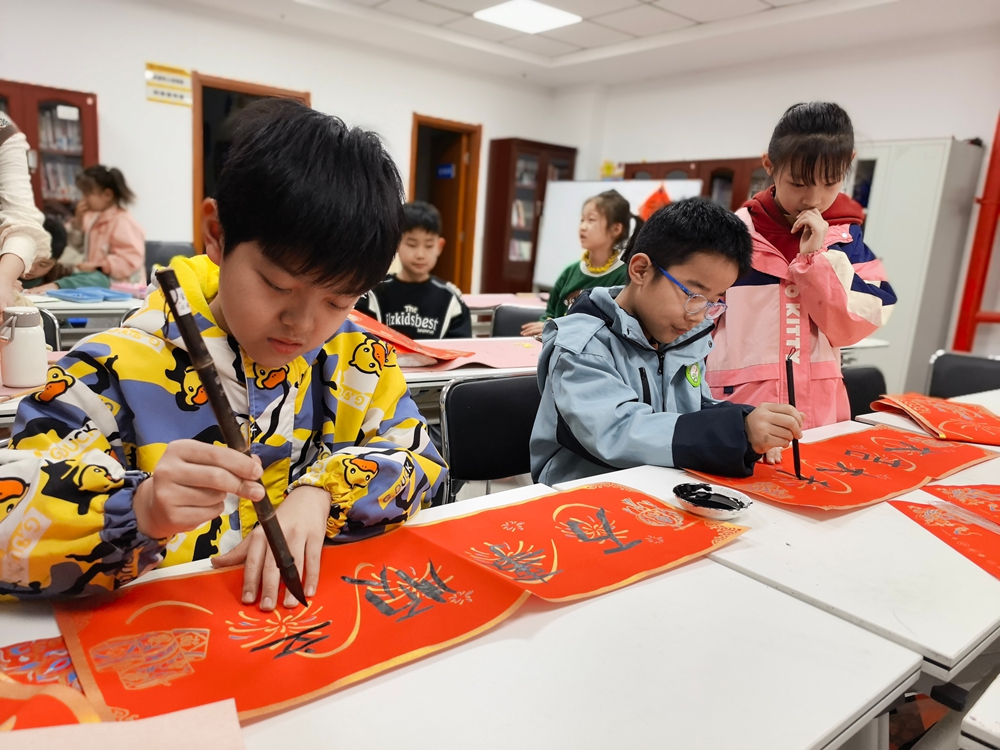 孩子们认真专注的神情与笔下逐渐成型的红色“福”字相映成趣,不少孩子表示:“第一次写毛笔字,原来汉字这么好看!”家长们也纷纷点赞,公益课程让孩子在家门口就能接触传统文化,既丰富了课余生活,又增强了文化自信。
