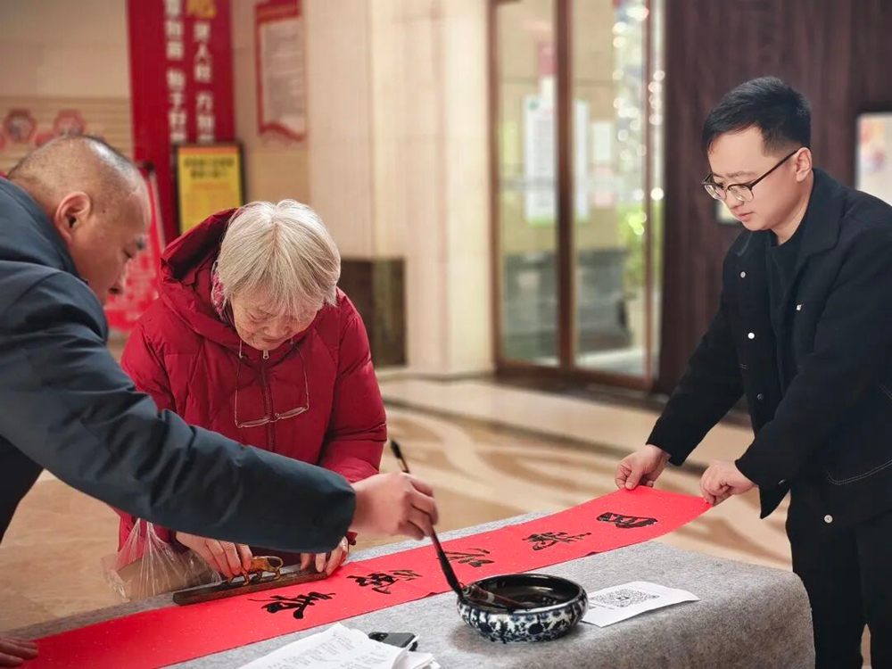 在绿地社区,一场以“党建领航开新年 红联福满迎新春”为主题的公益书写春联活动温情启幕。社区携手家有娃绘本馆、艺杨书苑、科瑞物业、唐槐书画院等7家联建单位,在辖区一期、四期党群服务站同步开展活动,邀请辖区在职党员、退休党员、退役军人与专业书法爱好者齐聚一堂,挥毫泼墨送福迎春。活动现场墨香袅袅、暖意融融,书法老师们笔力遒劲,楷书工整、行书灵动,一幅幅寓意吉祥、对仗工整的春联与福字跃然红纸之上,既有对家国安宁的美好祝愿,也有对邻里和睦、阖家幸福的真切期许。现场还设置了少儿书法体验环节,孩子们在老师指导下认真执笔蘸墨,用稚嫩的笔触书写新春祝福,成为活动中一道灵动的风景线。此次活动累计书写发放春联180余副,居民们有序挑选、满心欢喜领取,在笔墨书香中感受传统年俗魅力,邻里之间的交流互动也愈发密切。