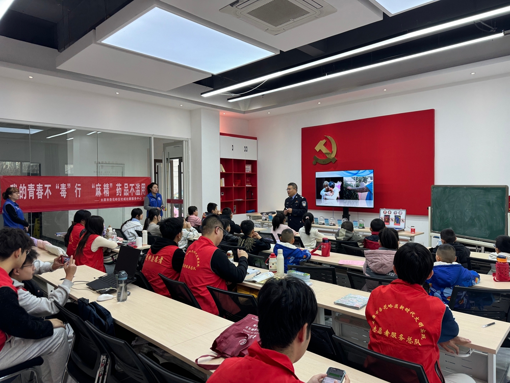 文明山西网讯 青少年是国家的未来、民族的希望,禁毒教育从儿童抓起,是筑牢全民禁毒防线的关键一环。为进一步强化6-12岁儿童的禁毒意识,帮助他们认清毒品危害,掌握防毒拒毒基本技能,近日,太原市杏花岭区敦化坊街道河北里社区联合敦化坊街道司法所,特邀山西省强制隔离戒毒所副所长、山西省蒲公英禁毒宣讲团团长、山西禁毒讲师团讲师张俊和警官开展专题儿童禁毒知识宣讲活动,20余名儿童及家长代表参与活动,通过专业授课与互动教育,为孩子们的健康成长筑起一道坚实的禁毒屏障。