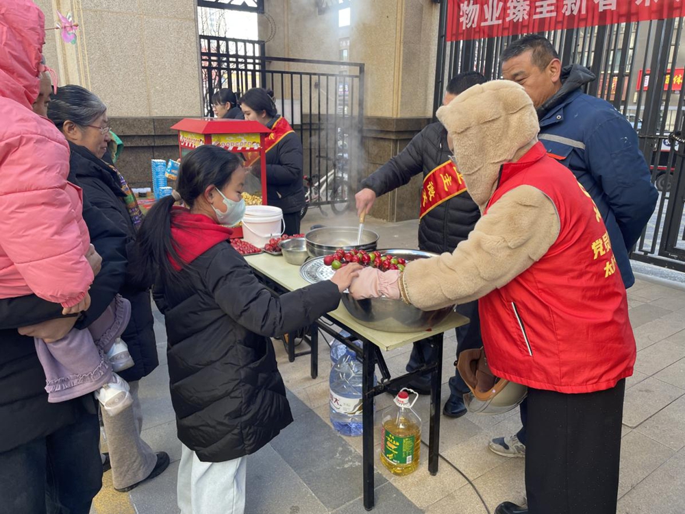 除精彩的民俗表演外,活动现场还设置了多项互动体验与暖心派送环节。冰糖葫芦制作区备受欢迎,居民们有序参与制作、品尝,酸甜酥脆的口感勾起满满年味,大人小孩欢声笑语不断。社区与物业还精心准备了新春红包、纪念金币、巧克力等礼品,现场免费发放,为居民送上实实在在的新春惊喜与美好祝福。大家手持礼品、合影留念,脸上洋溢着幸福与喜悦,现场气氛热烈温馨。