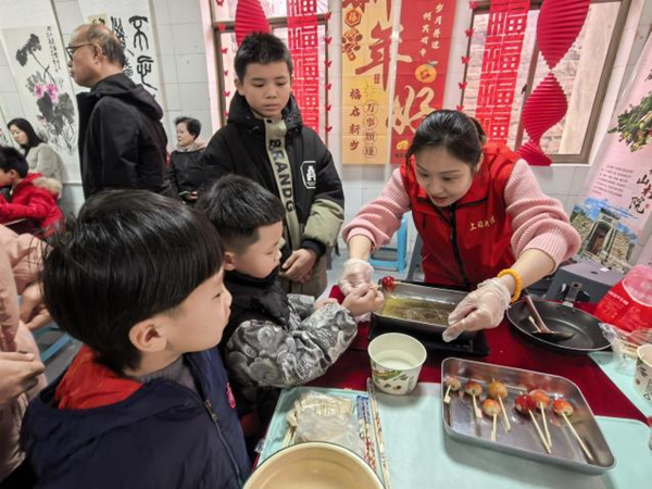 文明山西网讯 2月9日,阳泉市城区上站街道小阳泉北社区新时代文明实践站开展“萌娃闹春 乐享民俗”主题活动,以拓印、手工冰糖葫芦制作、书法写作、投壶趣味挑战四大特色环节为载体,邀请数十组亲子家庭齐聚一堂,在动手实践中触摸传统文脉,在欢声笑语中定格新春记忆。