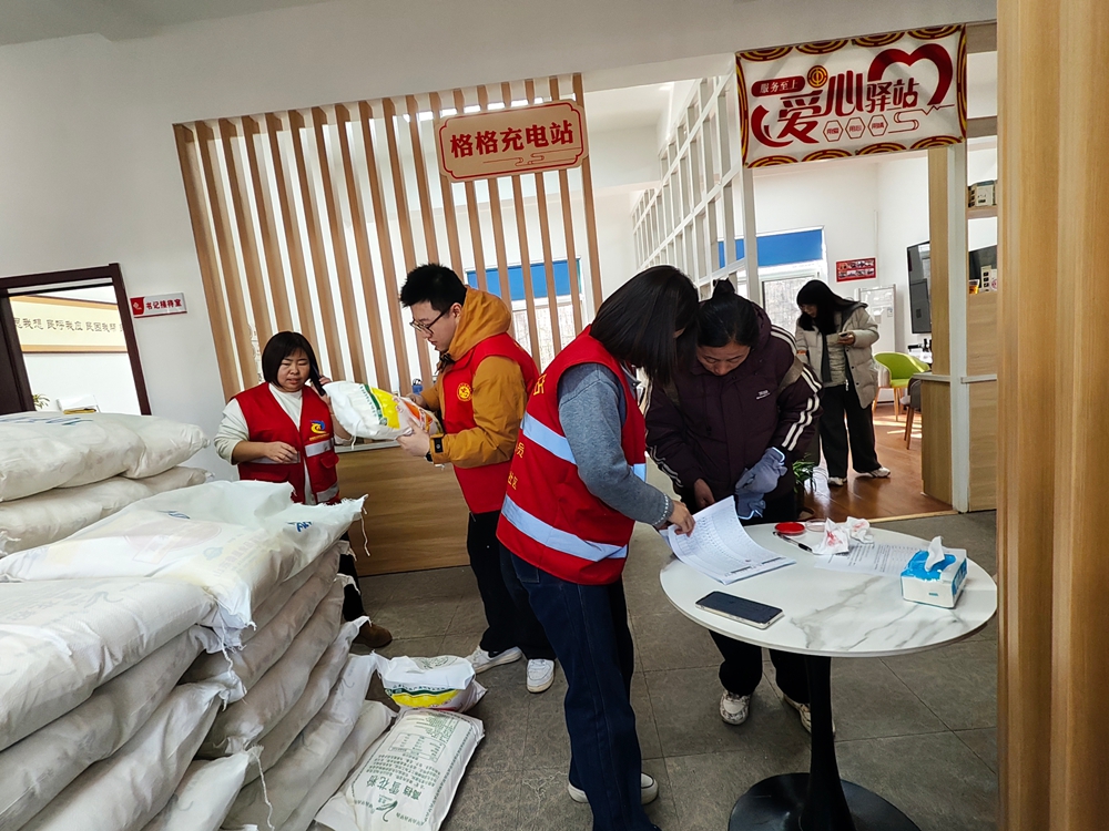 在发放现场,一袋袋沉甸甸的面粉整齐码放。为了让每一位退役军人都能及时收到这份心意,民航社区的网格员们化身“搬运工”和“传递员”。她们徒手拆开面袋,将一袋袋沉甸甸的物资逐一递到退役军人手中。粗糙的编织袋在掌心反复摩擦,不一会儿,大家的手上就被勒出了一道道鲜红的印记,指尖也因用力而微微泛白,但没有人停下脚步,也没有人抱怨一句。