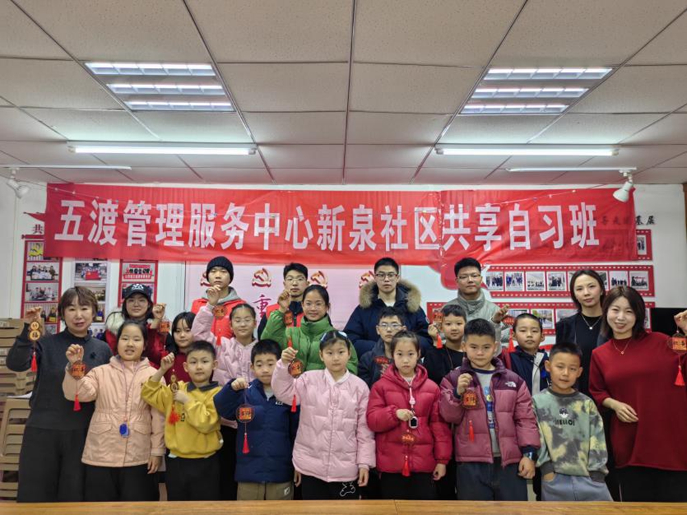 活动最后,全体参与人员手持福牌合影留念,将这份新春的喜悦与非遗的美好定格。此次共享自习室年后第一课,既让孩子们体验了非遗手工的乐趣,传承了中华优秀传统文化,也为青少年搭建了互动交流的平台,让社区共享自习室真正成为孩子们成长的“第二课堂”。