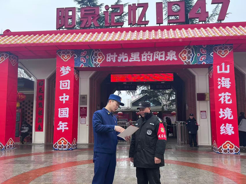 文明山西网讯 近日,阳泉市城区消防救援大队组织宣传人员深入辖区重点景区,开展元宵节前消防安全宣传活动。