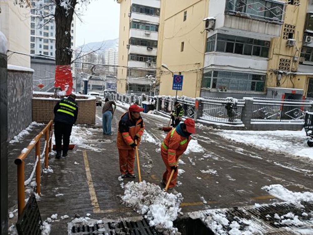 文明山西网讯 近日,阳泉市矿区赛鱼街道井沟社区新时代文明实践站以雪为令、闻雪而动,第一时间联合达人云潭物业、太行物业及社区银龄先锋志愿者,开展全覆盖清雪除冰专项行动,用实干筑牢民生安全防线。