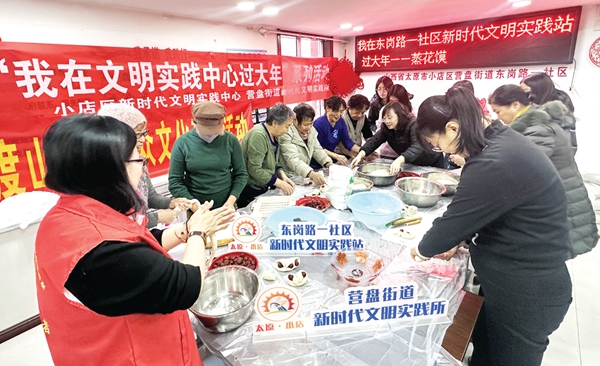 太原市小店区“我在文明实践中心过大年”蒸花馍活动现场。