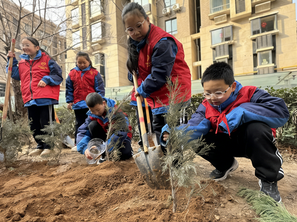 南寒街道西华苑东社区联合太原市实验小学西华苑分校开展“春风添新绿 护苗正当时”主题实践活动,以党建引领校社联动,将植绿护绿与“五彩护苗”行动、未成年人保护工作有机结合。