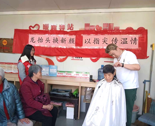 文明山西网讯 近日,阳泉市高新区大连街管理服务中心桃源社区新时代文明实践站邀请NI接发造型师在暖新驿站,开展“龙抬头焕新颜 以指尖传温情”义剪志愿服务活动,为社区老年居民、困难群众、环卫工人及新业态劳动者提供免费理发服务,用贴心行动点亮居民幸福生活。