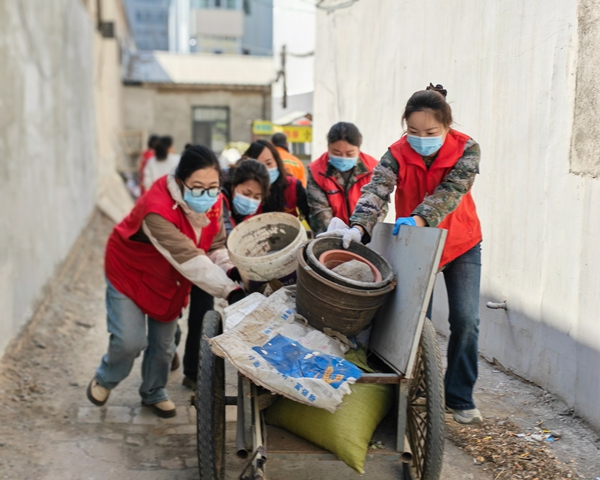 文明山西网讯 近日,太原市尖草坪区南寨街道朝阳社区大工行宿舍小区内,一场特殊的“战役”悄然打响。一抹抹“志愿红”化身飒爽干练的“最美推车人”,在狭窄巷道里灵活走位,用最接地气的干劲,对着卫生死角、陈年杂物和楼道乱堆乱放发起精准总攻,推动老旧小区迎来“颜值UP”与“里值提升”的双重爆击。