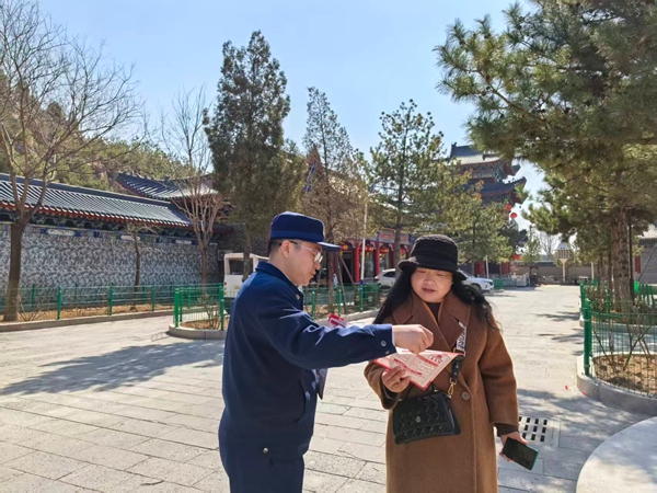 活动现场,宣传人员结合景区人员密集、游客流动性大等特点,重点向景区工作人员和过往游客讲解景区火灾防控要点、公共场所逃生技巧、消防设施器材使用等安全知识。针对景区内电气线路使用、易燃物品存放、消防通道畅通等关键环节,耐心讲解日常防火注意事项,提醒游客严禁携带易燃易爆物品进入景区,不在禁烟区域吸烟、不乱扔烟头,安全文明出游。期间,宣传人员通过发放宣传手册、现场答疑解惑等多种形式,面对面为群众普及消防法律法规和防火逃生知识,确保人人懂消防、守安全、会处置。