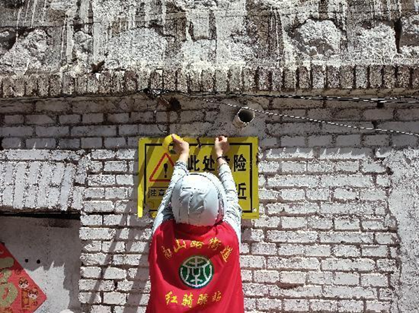 “细”字为常,社区积极做好防汛宣传与警示工作。为了让居民充分了解防汛知识,提高自我防范意识,社区工作人员通过多种渠道开展防汛宣传活动。一方面,在社区公告栏、网格微信群等平台发布防汛安全提示和预警信息,提醒居民密切关注天气变化,做好防汛准备;另一方面,深入到危房居民家中,进行面对面的防汛宣传,向居民讲解防汛知识和应急避险的方法。同时,对于排查出的防汛隐患点,社区及时张贴警示牌,提醒过往居民注意安全,避免发生意外事故。