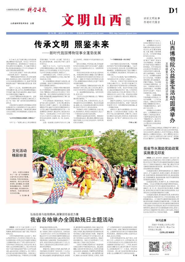 《文明山西》周刊由山西省文明办指导、科学导报社主办,是全省唯一的精神文明类报纸,对开八版,每周五出版,重点宣传山西省群众性精神文明“五大创建”活动、新时代文明实践中心建设、道德典型选树、学雷锋志愿服务等精神文明建设工作,兼顾报道全国各地精神文明创建活动先进经验和创新举措。
