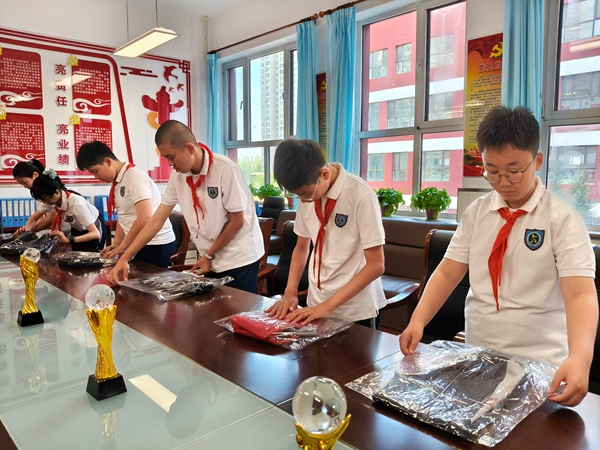 6月5日“世界环境日”当天,学校组织开展“校服循环“衣”旧暖心”活动,向六年级全体毕业生发出倡议,鼓励学生在自愿的基础上,把自己的完好的校服捐赠给学校,为学弟学妹献出爱心、传递温暖。这一倡议得到了全体学生和家长的广泛认同,一致表示:“这是学校为民办实事的利好举措,将坚决支持、积极参加,让校服循环无限延续,每一件校服“衣”旧暖心!”。