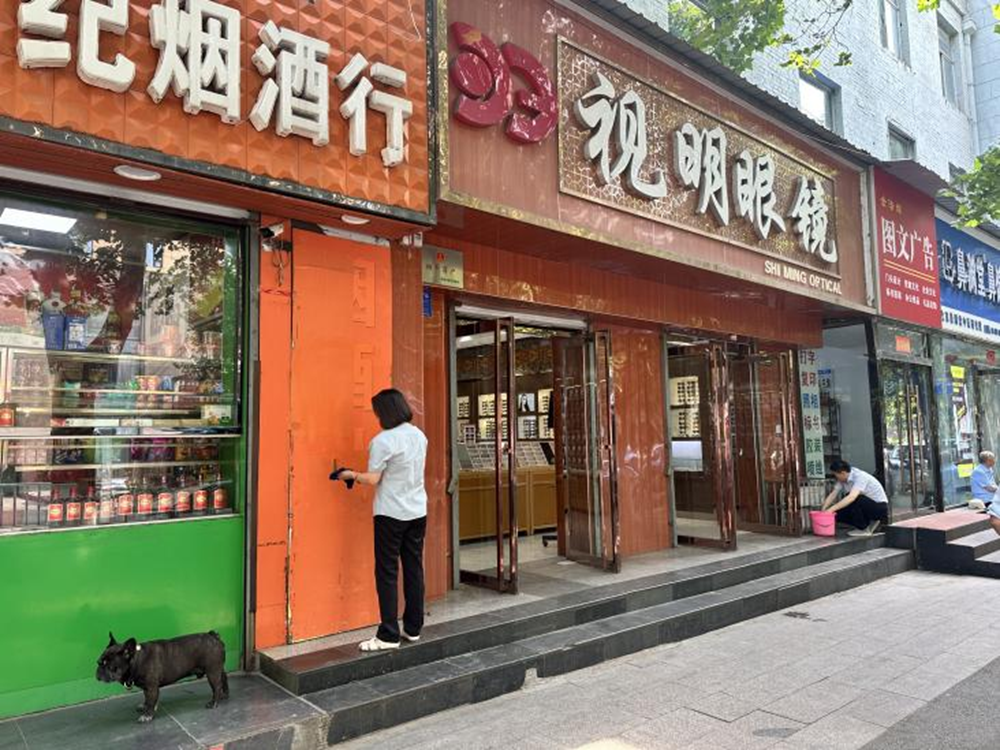 社区工作人员分组对沿街商户进行全面排查、走访,仔细检查每一块门头牌匾的状况。对于存在积尘、破损、污渍、老旧等问题的牌匾,志愿者耐心地向商户讲解清理的必要性和重要性,动员商户共同参与清理行动。商户们也积极配合,对的牌对门头牌匾、卷闸门、门店墙面及门前人行道等区域进行全面清洗。在清理过程中,大家齐心协力,有的借助高压水枪冲洗卷闸门,有的踮起脚尖、高举胳膊、手拿抹布或扫把认真擦拭牌匾表面的污渍,经过努力,原本黯淡无光、脏乱的门头牌匾变得干净整洁、明亮醒目。同时社区工作人员引导商户规范经营,自觉落实好“门前三包”责任,对各类不文明现象及行为及时劝阻制止并对区域进行清扫、除尘,整理堆放杂物,让临街道路更加干净整洁。