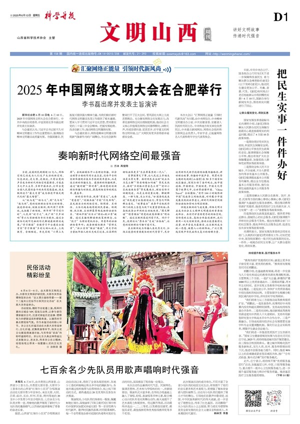 《文明山西》周刊由山西省文明办指导、科学导报社主办,是全省唯一的精神文明类报纸,对开八版,每周五出版,重点宣传山西省群众性精神文明“五大创建”活动、新时代文明实践中心建设、道德典型选树、学雷锋志愿服务等精神文明建设工作,兼顾报道全国各地精神文明创建活动先进经验和创新举措。