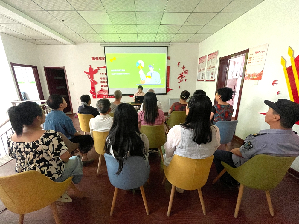 活动现场,卫生站的医护人员运用通俗易懂的语言,结合PPT,围绕健康素养的基本知识与理念、健康生活方式与行为、基本技能等内容展开讲解。在基本知识和理念环节,医护人员阐述了健康的全面定义,强调健康涵盖身体、心理和社会适应多方面,并对吸烟危害、疫苗接种等重点知识进行解读,让居民深刻认识到健康的重要性。在健康生活方式与行为板块,医护人员引导居民养成勤洗手、合理膳食、适量运动等良好习惯,特别关注重点人群健康,还强调了安全用药、食品安全等生活常识。