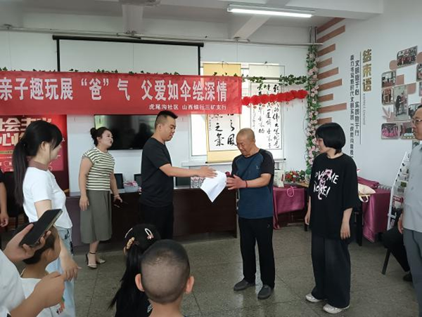 文明山西网讯 近日,阳泉市矿区赛鱼街道虎尾沟社区携手山西银行三矿支行开展 “亲子趣玩展‘爸’气 父爱如伞绘深情” 主题活动,吸引众多亲子家庭参与,进一步弘扬中华民族传统美德,营造感恩父爱的良好氛围。