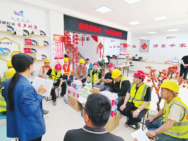文明山西网讯 5月20日,当网络世界被甜蜜告白刷屏时,爱心驿站志愿者将一份特殊的“520礼物”送到城市建设者手中。在太原市尖草坪区朝阳社区爱心驿站里,志愿者们用“一杯凉茶的温度”向农民工群体深情告白:“这座城,因你而甜!”。