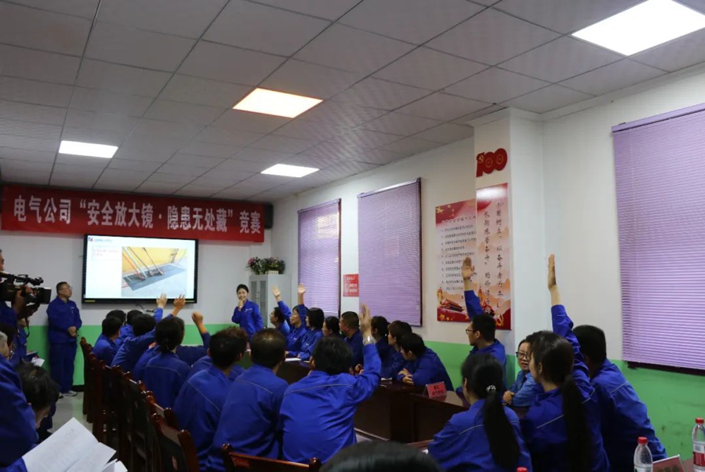走进电气公司,“安全放大镜——隐患无处藏”活动正如火如荼进行。员工们通过隐患快速阻击、现场演示、复合隐患识别三个环节,根据现场图片排查隐患进行抢答,口头陈述隐患类型和所违反的规章制度条款,规范演示灭火器操作以及防毒面具、安全带、安全帽的正确佩戴方法,不仅提升了员工识别电气风险的专业敏感性,更将“隐患即事故”的预防理念内化于日常操作,为确保电气安全构筑坚实屏障。
