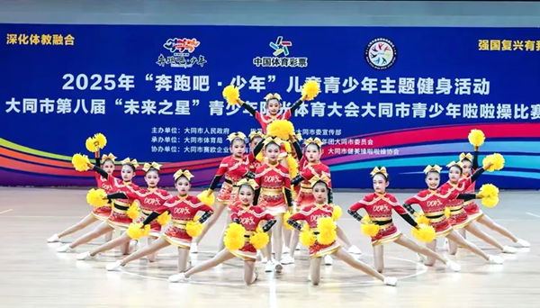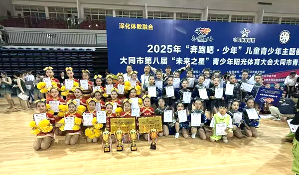 文明山西网讯 6月15日,2025年“奔跑吧•少年”儿童青少年主题健身活动、大同市第八届“未来之星”青少年阳光体育大会大同市青少年啦啦操比赛在体育馆举办,此次大赛,山西大同大学附属小学派出3支队伍,共51名运动员参与4个项目的角逐,旨在培养学生团结拼搏的精神,增强学生的体质,使学生德智体美劳全面发展。在这近千人啦啦操盛会,该校啦啦操队分别获得了街舞一等奖,三等奖,啦啦操校园示范套路一等奖以及啦啦操自编套路一等奖,并且荣获了优秀组织奖以及最佳闪耀造型奖。