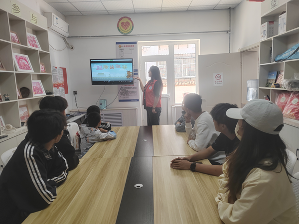 趣味讲解,解码端午习俗奥秘 短片结束后,志愿者为青少年们开启了端午习俗的深度讲解之旅。从“挂艾草菖蒲驱邪避瘟”的科学依据,到“赛龙舟”背后蕴含的团结拼搏精神;从“佩香囊”的美好寓意,到“食五黄”的饮食文化,通过图文并茂的课件展示、实物道具呈现,将一个个习俗讲得绘声绘色。孩子们目不转睛,还不时举手提问,现场互动频繁,学习氛围浓厚。
