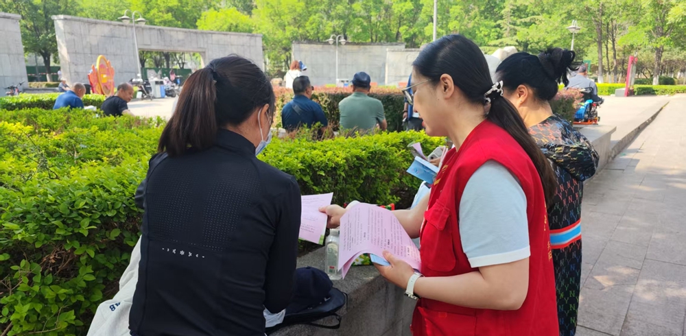 文明山西网讯 近日,阳泉市矿区赛鱼街道龙泉社区工作人员在辖区赛鱼公园组织开展“分类一小步,文明一大步”主题宣传活动,进一步倡导辖区内居民在生活中践行保护生态环境、低碳生活的理念,了解垃圾分类的益处,人人参与垃圾分类。